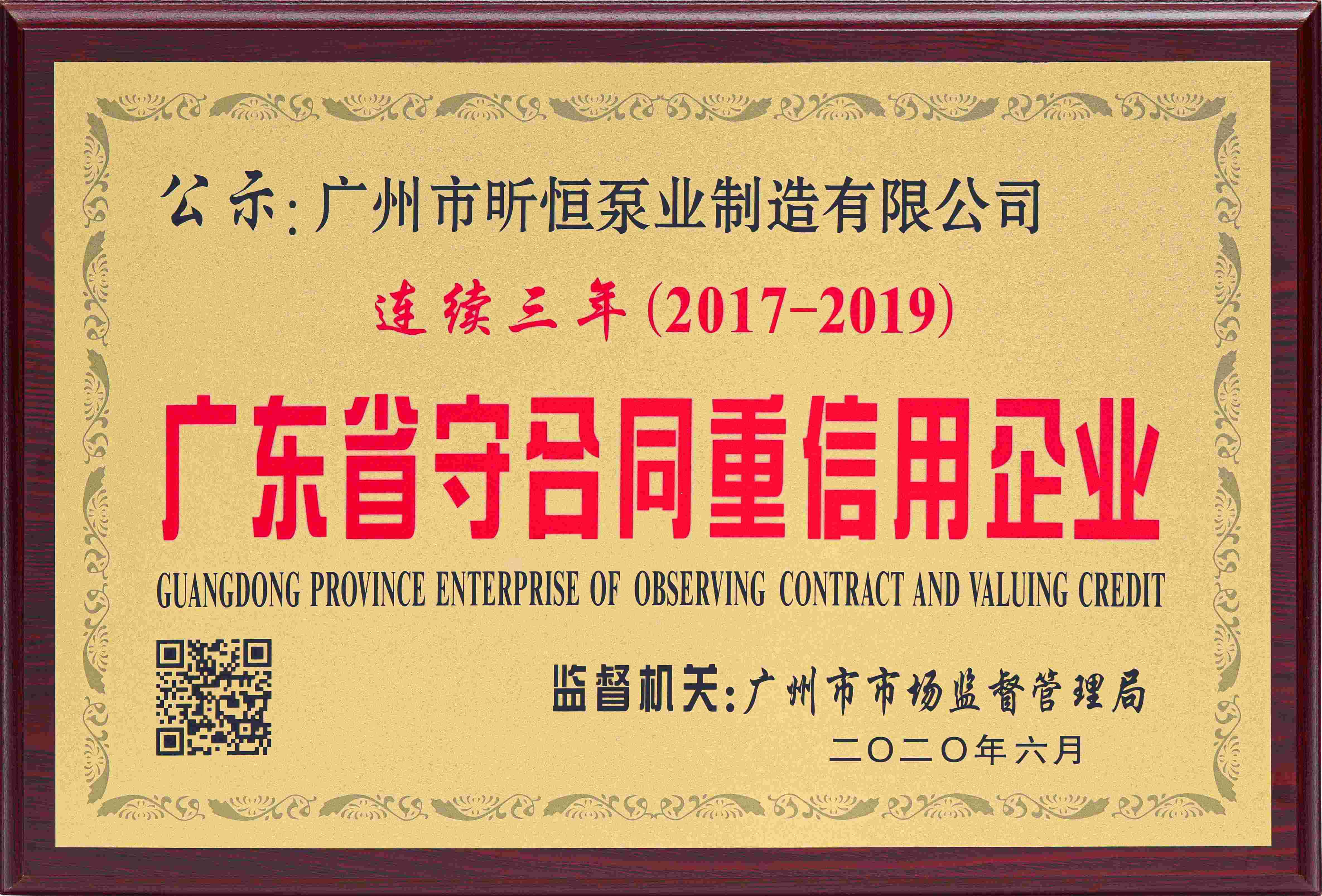 广东省“守合同重信用”企业“连续三年
