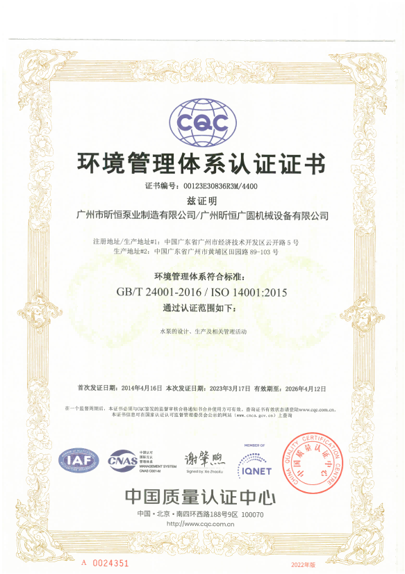 环境管理体系认证证书